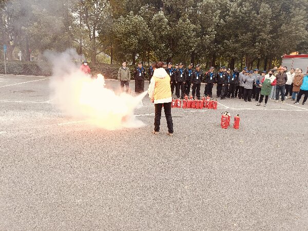 二、消防实战演练。理论培训后,组织参训人员进行消防设施器材的实操演练。实操现场点燃大铁桶内可燃物来模拟火情,在消防队员的专业指导下,大家依次上场打开干粉灭火器进行灭火实操;后续,消防队员向动物园应急队演示并现场教学快速连接铺设消防水带、应急救护等实战技能技巧。