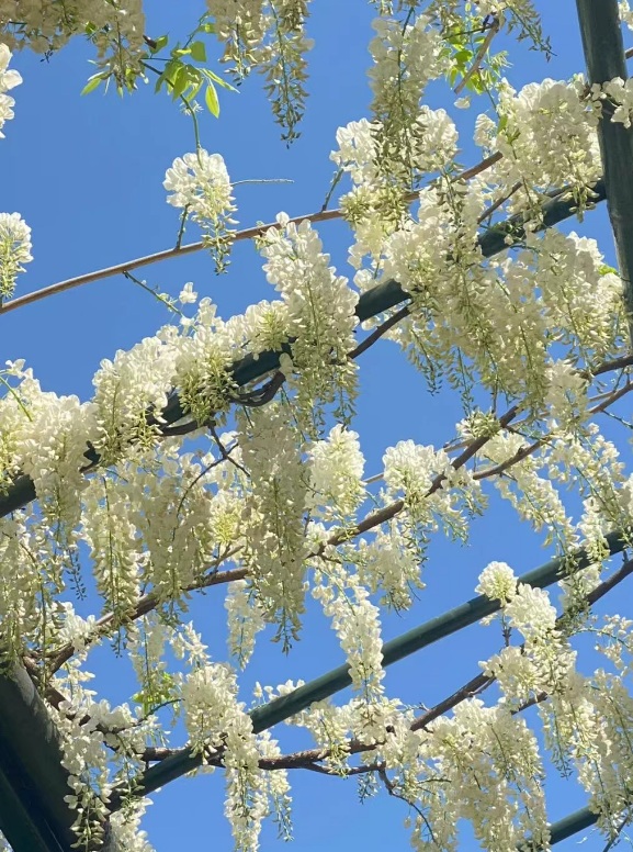 紫藤,又称藤萝、朱藤、黄环,是一种落叶攀缘缠绕性大藤本植物,属于豆科紫藤属,每年4月初开花,花期大约2周~4周。紫藤主要分为美国紫藤、日本紫藤、中国紫藤三个品种。梅园七彩长廊的日本长穗紫藤花色有白有紫,深浅不一。