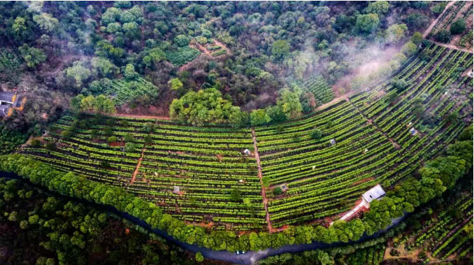 洞庭东山气候温和、冬暖夏凉,云雾多、湿度大,适宜茶树生长。山上有柑橘、枇杷、杨梅、石榴等二十多种果木。茶树与果木间植、枝桠相接、根脉相通,茶吸果味、果熏茶香,故碧螺春茶兼具花香、果味、茶韵,也创造出了碧螺春茶果间作共融共生的生态系统。2020年,“江苏吴中碧螺春茶果复合系统”成功入选了农业农村部颁发的“中国重要农业文化遗产名录”。