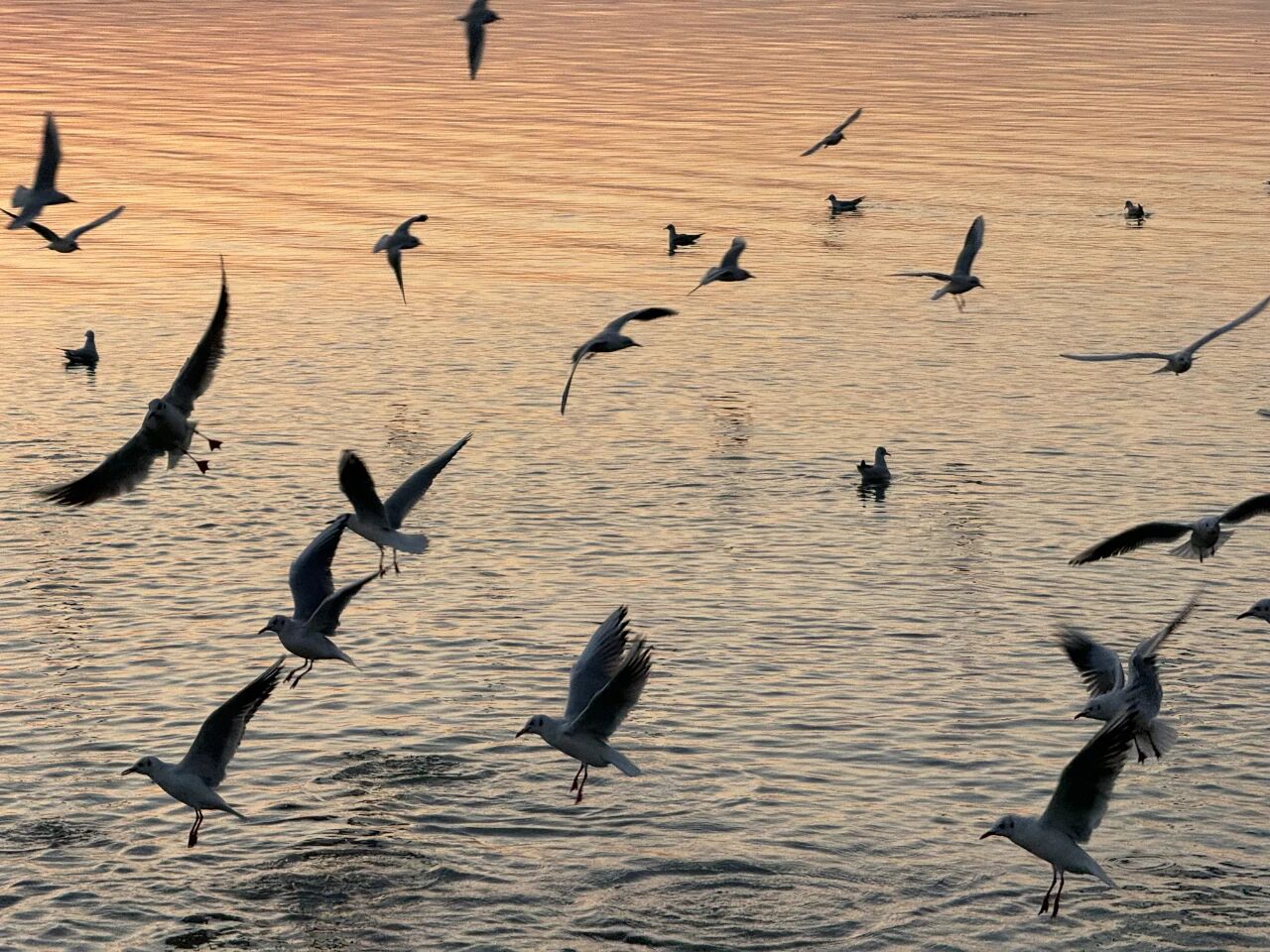 数百只红嘴鸥在湖面上盘旋、嬉戏,时而低空掠过水面叼起鱼虾,时而围绕着游人展翅翻飞,争食的模样憨态可掬。阳光下,洁白的羽翼泛着光泽,与潋滟的湖光相映成趣,为略显萧瑟的冬日注入了满满生机与野趣。站在湖岸远眺,水光粼粼,万鸥齐翔,耳边是波涛拍岸的轻响,夹杂着红嘴鸥清脆的啼鸣,两种自然之声交织成冬日独有的交响,治愈感十足。