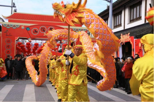 开街纳祥,喜乐登场。锣鼓声起,舞龙沿街巡游,金黄的龙身随着鼓点翻腾跳跃。欢声笑语伴着鼓点回荡在古街上空,奏响了最热闹的新年乐章,这便是东山人刻在骨子里的年味仪式感。