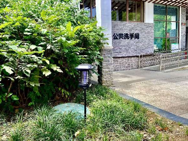 二是物理防护方面。在人员聚集区,如卫生间、办公区等周边布设太阳能驱蚊灯,共计20盏,利用特定光波吸引蚊虫,通过绿色环保的物理方式灭杀,有效降低蚊虫密度。此外,针对特定害虫如蚜虫、粉虱等,在月季等密集种植区域悬挂黄色粘板,巧妙利用这些害虫对特定颜色的强烈趋向性,结合粘板的强粘附性进行精准诱捕,实现无害化防控。