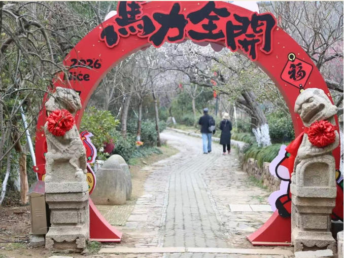 雨花胜境的新春,是藏在森林氧吧里的吉祥。在马年春节换上了喜庆新装,红色的光影与山间的绿意交相辉映,梅园里,寒梅初绽,与新春装饰相映,既有“暗香浮动”的雅致,又有“红红火火”的年味。