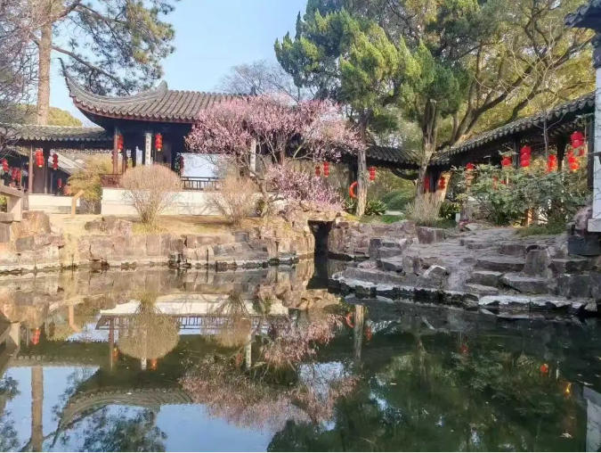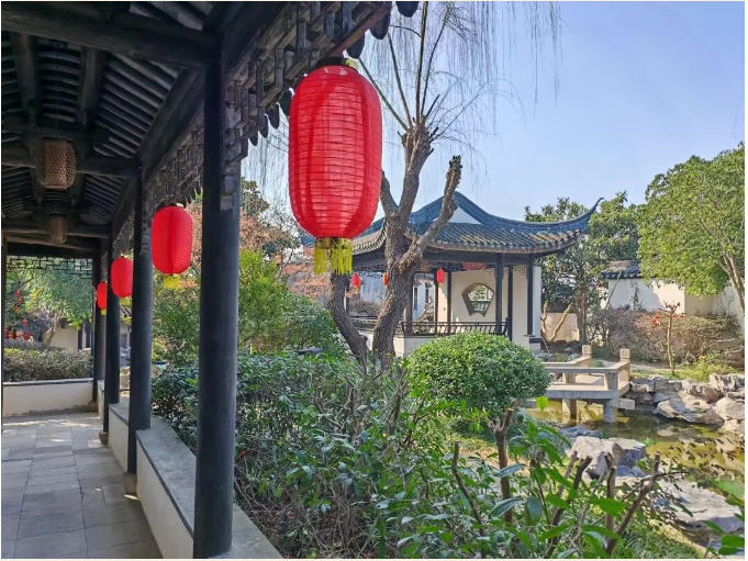 依山而筑,傍水而建的启园新春,是藏在太湖畔的温柔与诗意。红灯笼映着湖光山色,风一吹,灯笼轻摇,湖光粼粼,氛围感十足。