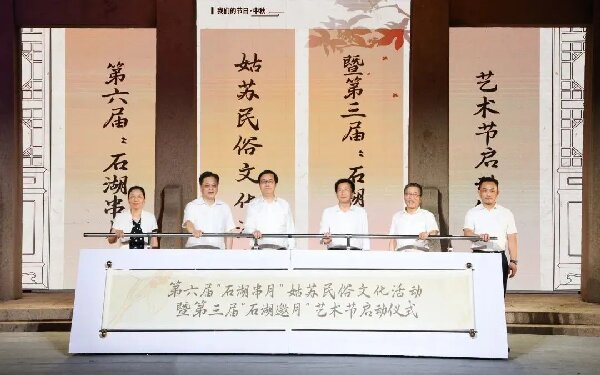 9月27日晚,第六届“石湖串月”姑苏民俗文化活动暨第三届“石湖邀月”艺术节系列活动在石湖景区正式开幕。苏州市副市长施嘉泓,苏州园林集团党委书记、董事长魏世震,姑苏区委常委、宣传部部长李忠,苏州园林集团党委副书记、总经理包维明等领导出席活动。