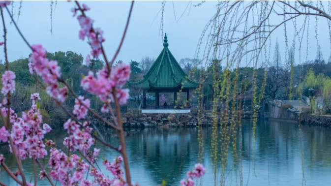 早桃的花色是粉粉嫩嫩的,春风轻拂,它们便欢快地摇曳起来。早桃的绽放,宛如奏响了蠡园春日乐章的序曲,让大家对即将全面盛开的桃花盛景满怀期待。