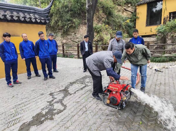 二是加强消防培训演练。本月积极组织单位职工和保洁、安保等第三方人员开展2批次专项消防技能培训,累计参训50余人次。结合景区常见火灾隐患案例,重点讲解植被火灾、电气火灾、香烛火灾的初期处置方法。植物园森林消防队在实战演练中模拟山林突发火情,灵活运用消防水车、水泵等设备,对模拟火点实施高效扑救。演练过程紧张有序,有效检验了森林消防队在复杂地形下的以水灭火作战能力。