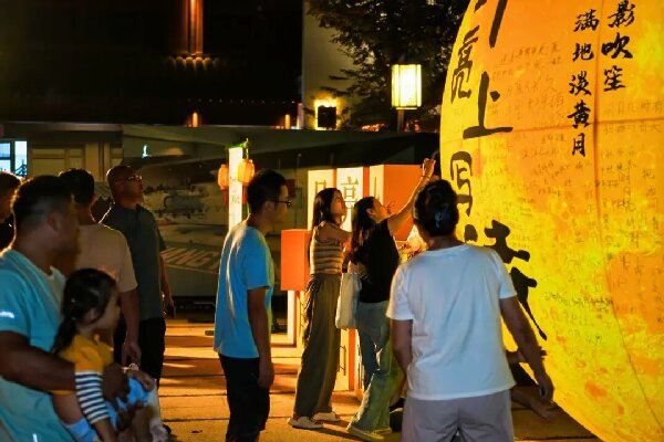 同时,市民游客还可以在“兔子花灯”“诗月长廊”等艺术美陈前打卡拍照,在非遗雅趣等市集里感受苏工苏作的魅力,邂逅身着宋制古装的NPC“范成大”“花童”,欣赏“弦歌映月”评弹快闪,全方位感受石湖秋日雅集,领略古今交融的文化魅力。