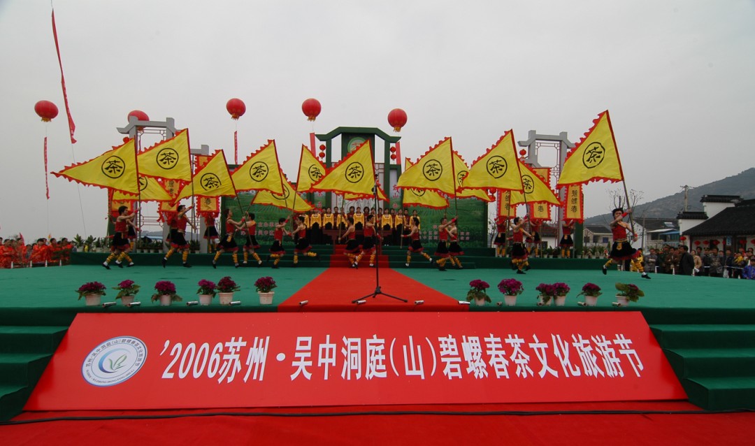 太湖洞庭山是碧螺春茶的故乡,也是中华茶文化的发源地之一。2006年3月25日下午,东山陆巷太湖边人山人海,人头攒动,苏州·吴中洞庭(山)碧螺春茶文化旅游节正在陆巷沙滩山下举办,上千名中外客商、各界人士和东山茶农参加活动。“祭茶神”是旅游节的开幕式,也是这次活动的重要内容,随着主持人宣布茶文化旅游节开始,会场上顿时鸦雀无声,庄严肃穆,一个庄重浑厚的男中音响起:“波清水柔兮,太湖之浪;土沃果香兮,洞庭之壤。翩翩茶神兮,瑞降吴中;茶中绝品兮,萌发我乡……碧螺峰下美名扬,吓杀人香仙家树……康熙驾临吴中地,好茶初尝喜欲狂……”