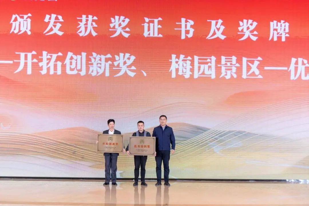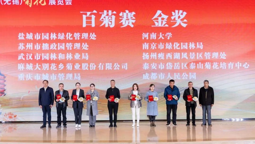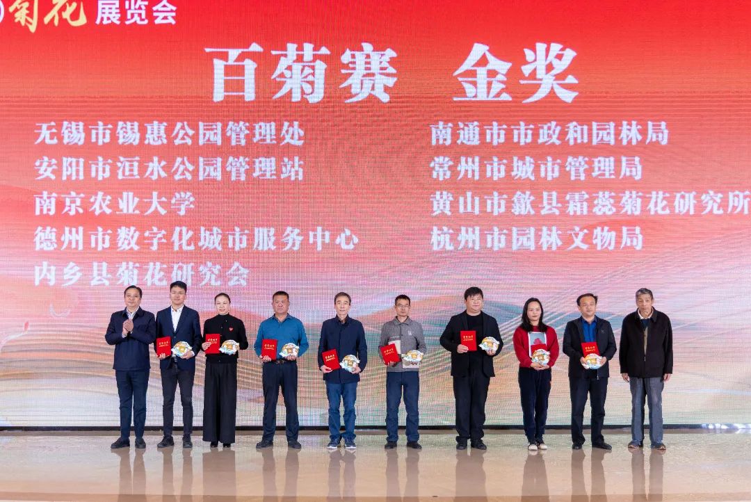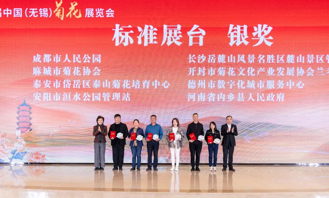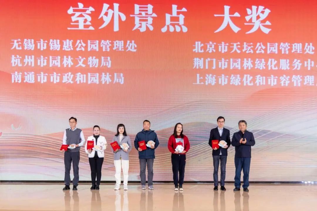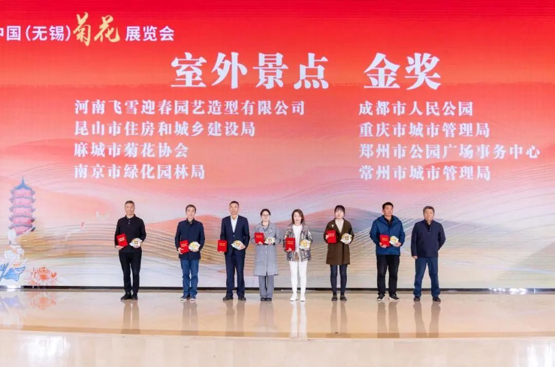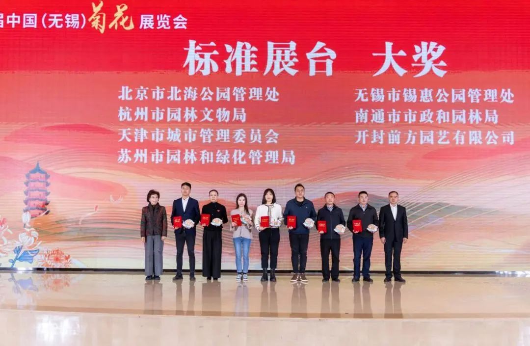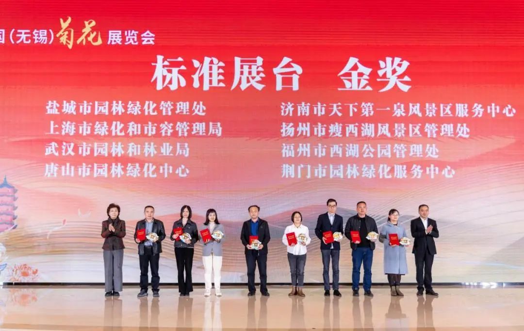 闭幕式上,组委会向百菊赛、标准展台、室外景点等团队项目获奖单位颁发了荣誉证书和奖牌。同时,无锡惠山古镇景区、梅园景区作为本届展览会主会场、分会场,分别荣获开拓创新奖和优秀组织奖。